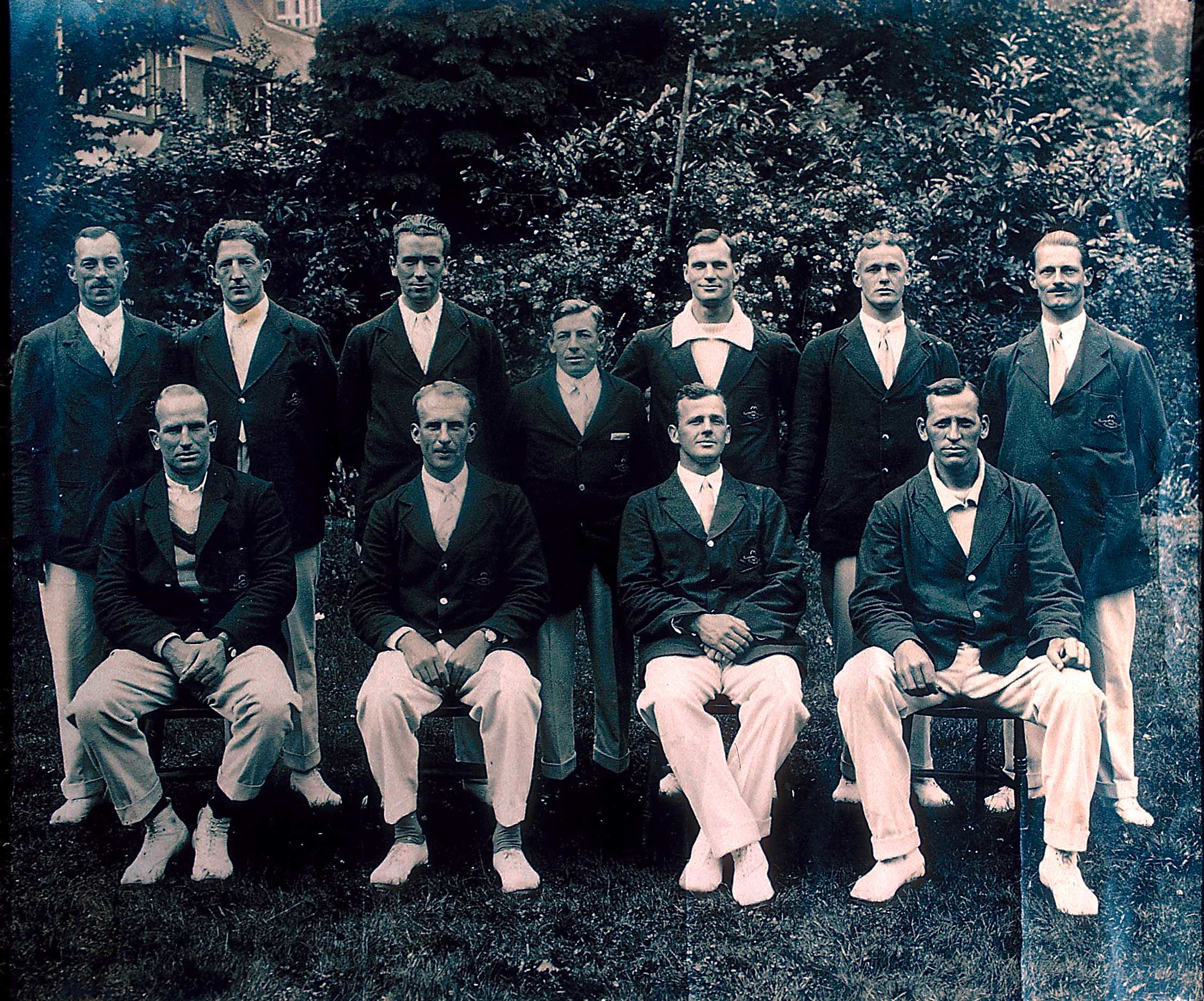 Portrait of the AIF No. 1 rowing crew from the Henley Peace Regatta