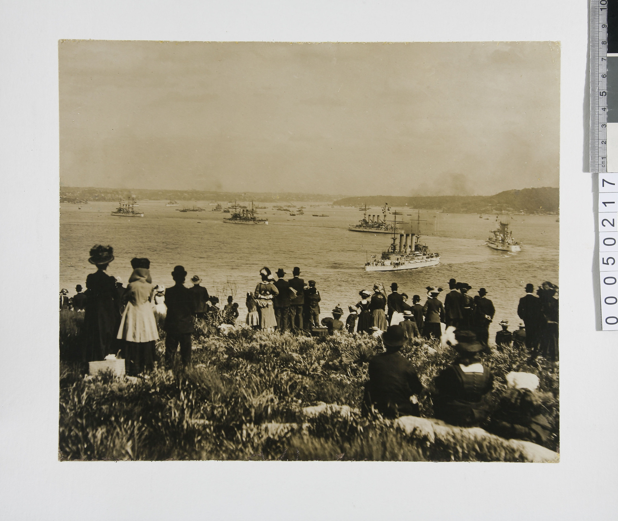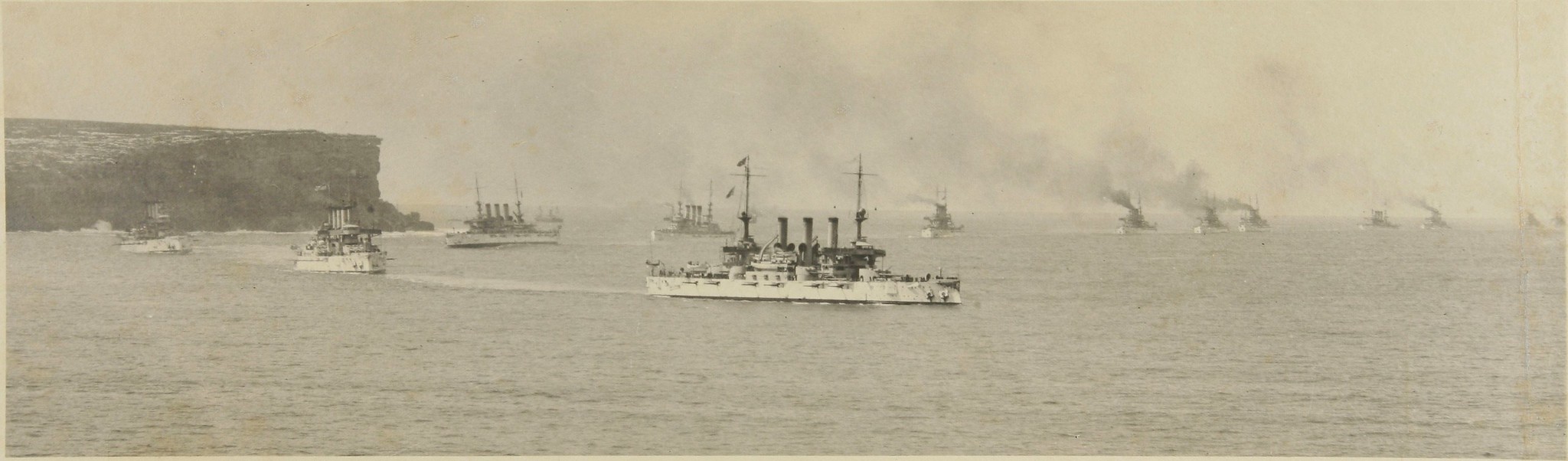 Visit of Great White Fleet to Sydney Harbour with Hornby Lighthouse in background