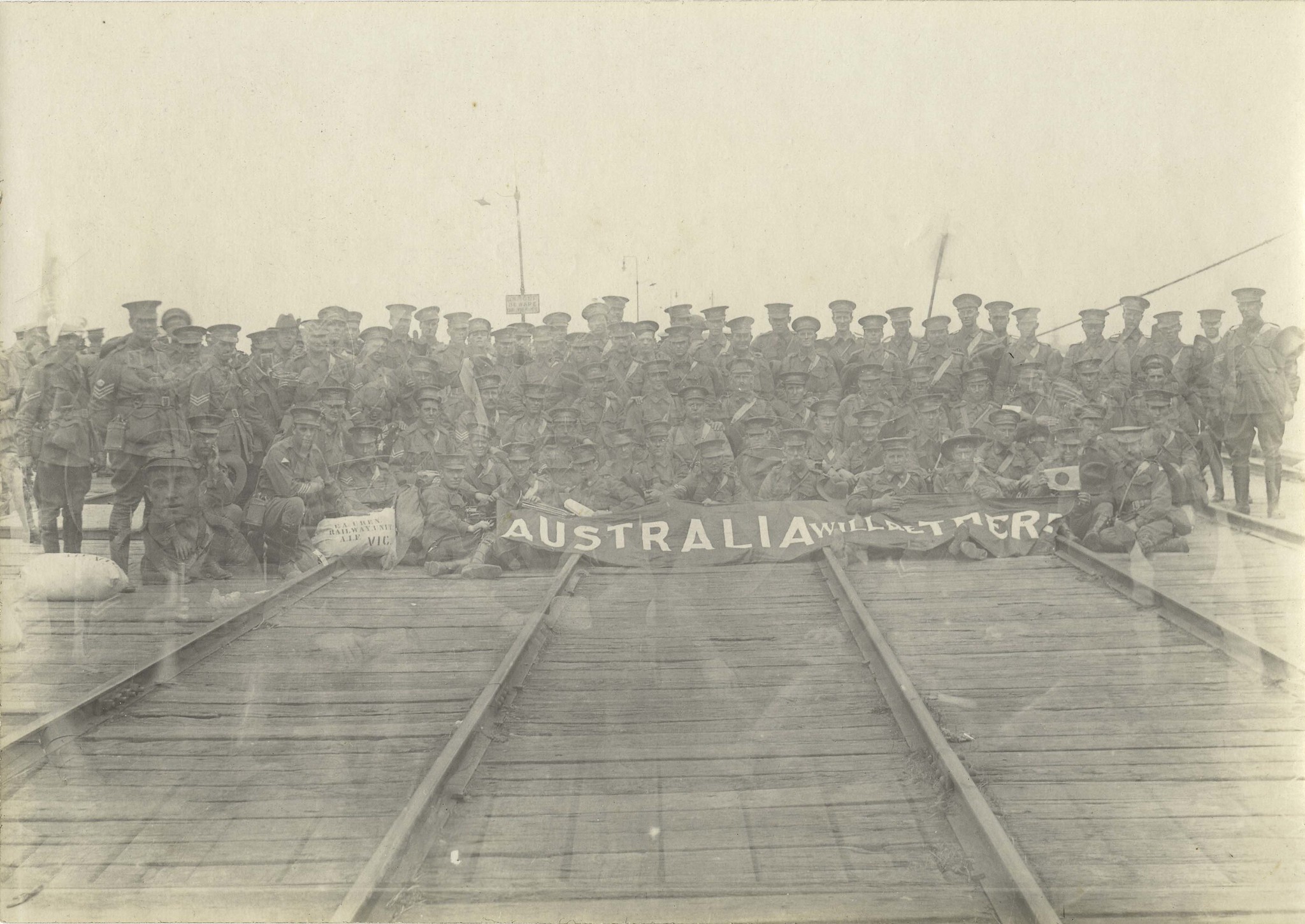 Members of No 1 Flying Squadron waiting to board HMAT ORSOVA