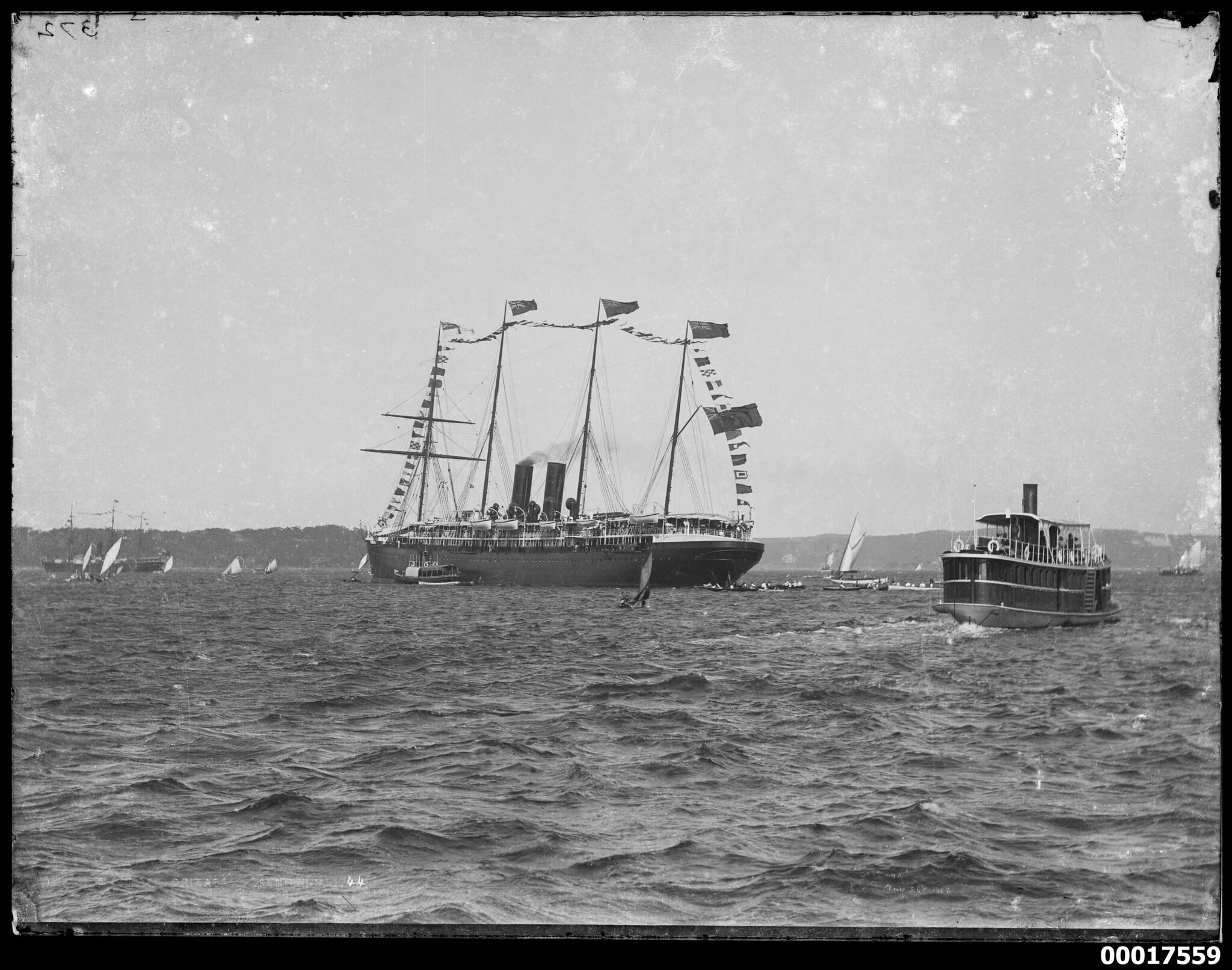 Passenger liner KÖNIGIN LUISE acting as a flagship for the Anniversary Day Regatta on Sydney Harbour