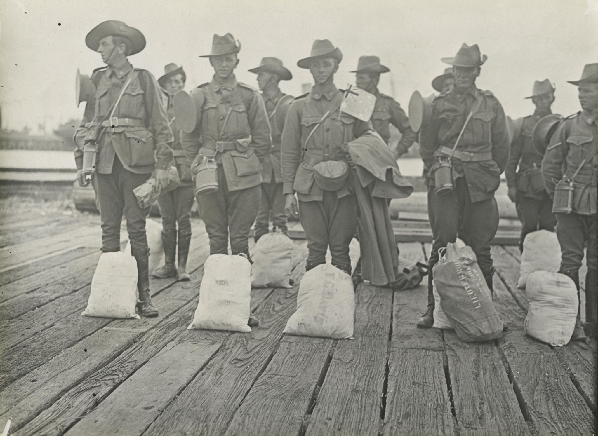 Members of the 58th Battalion reinforcements awaiting embarkation
