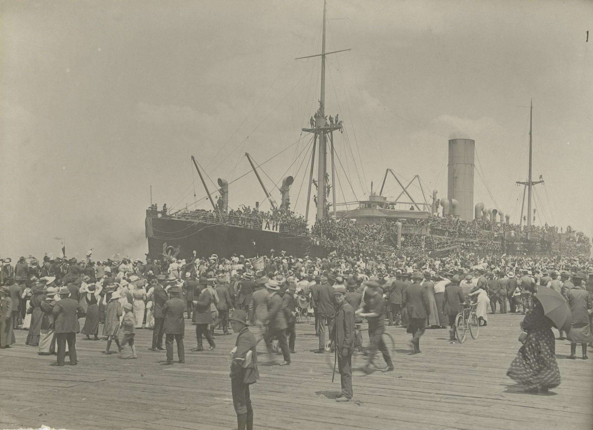 Members of the 21st Reinforcements, 4th Light Horse Brigade about to depart on the troopship NESTOR