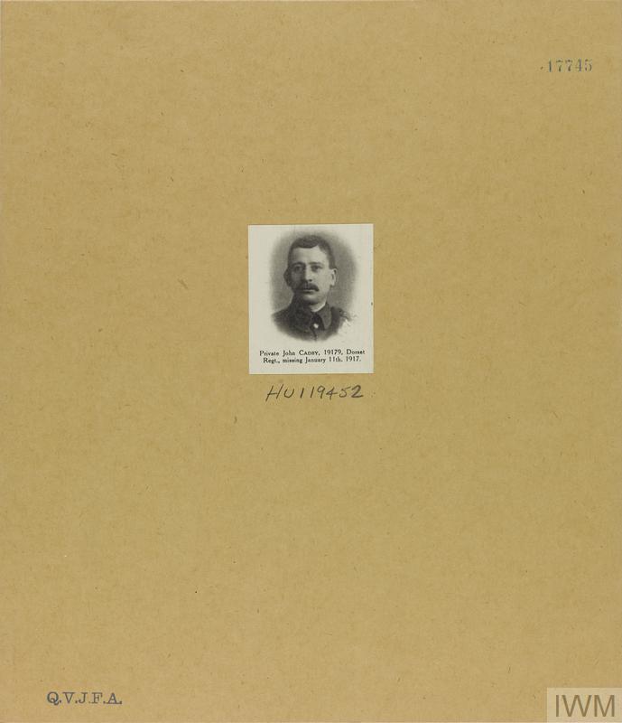Private John Cadby 19179. Unit: 5th Battalion, Dorsetshire Regiment. Death: 11 January 1917 Missing in action presumed killed in action Western Front