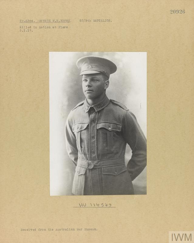 Private William Henry Brown 6364. Unit: 20th and 9th Battalion, Australian Infantry, Australian Imperial Force. Death: 05 January 1917 Flers Western Front