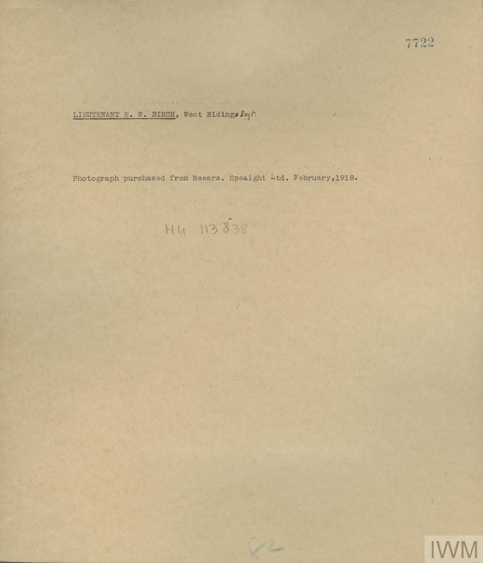 Lieutenant Eric Wykeham Birch MC. Unit: 4th Battalion, Duke of Wellington's (West Riding Regiment), attached to Machine Gun Corps. Death: 17 January 1917 Western Front