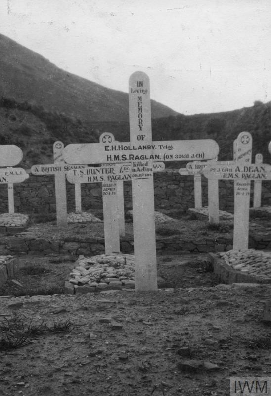 Telegraphist Edward Henry Hollamby J/32431. Unit: Royal Navy, HMS Raglan. Death: 20 January 1918, killed in action when his ship was sunk in action with the German/Turkish warships SMS Goeben and SMS Breslau, Eastern Mediterranean.