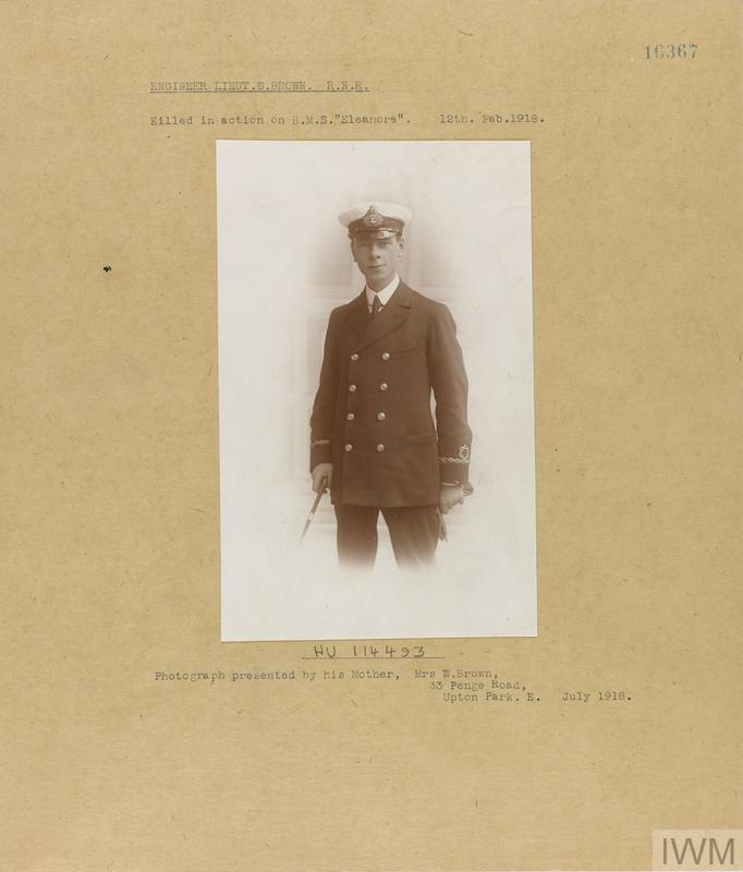 Engineer Lieutenant David Brown. Unit: Mercantile Fleet Auxilliary 'Eleanor', Royal Naval Reserve. Death: 12 February 1918 At sea