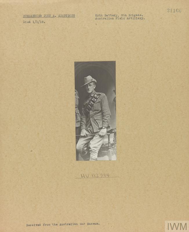 Bombardier John Andrewartha Armstrong 19615. Unit: 29th Battery, 8th Brigade, Australian Field Artillery. Death: 01 January 1918