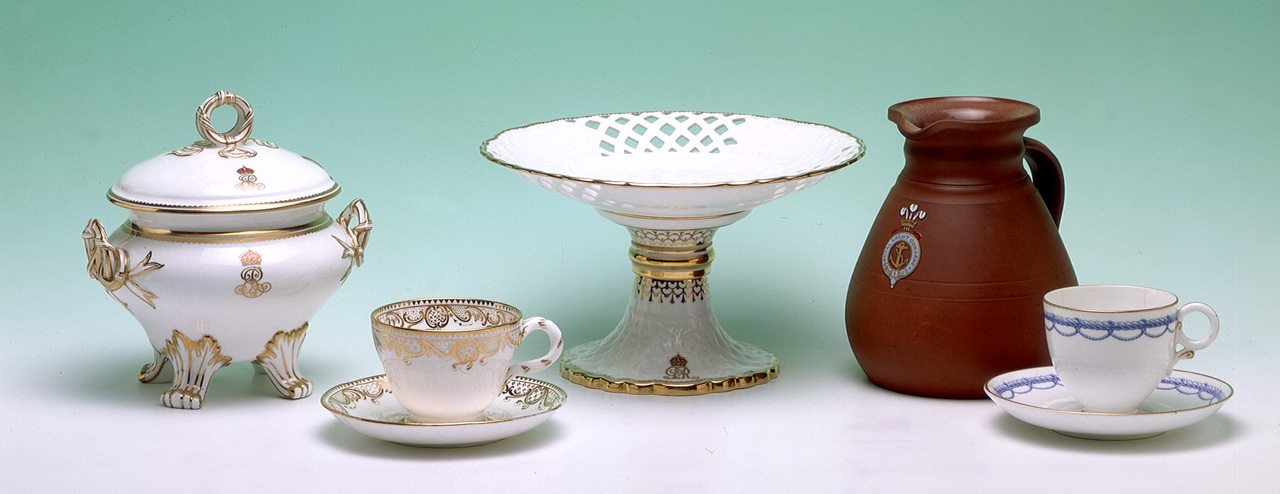 . Small tureen marked AAA5367.1, cover marked AAA5367.2 and stand marked AAA5367.3 made for Sir George Nares' Arctic Expedition of 1875. It is white glazed and transfer-printed in black with elaborate rope borders, simple rope rims and the badge of t