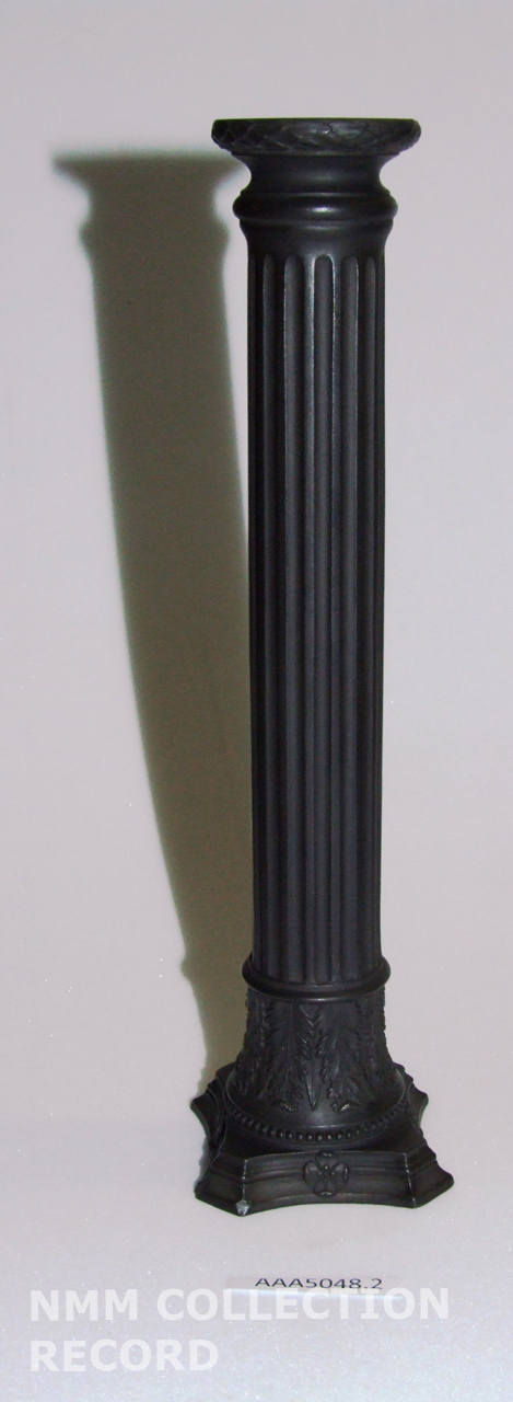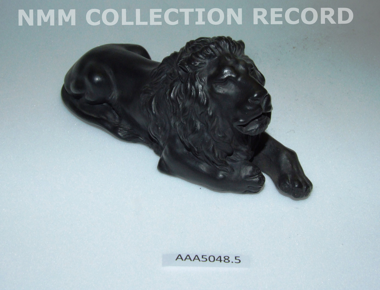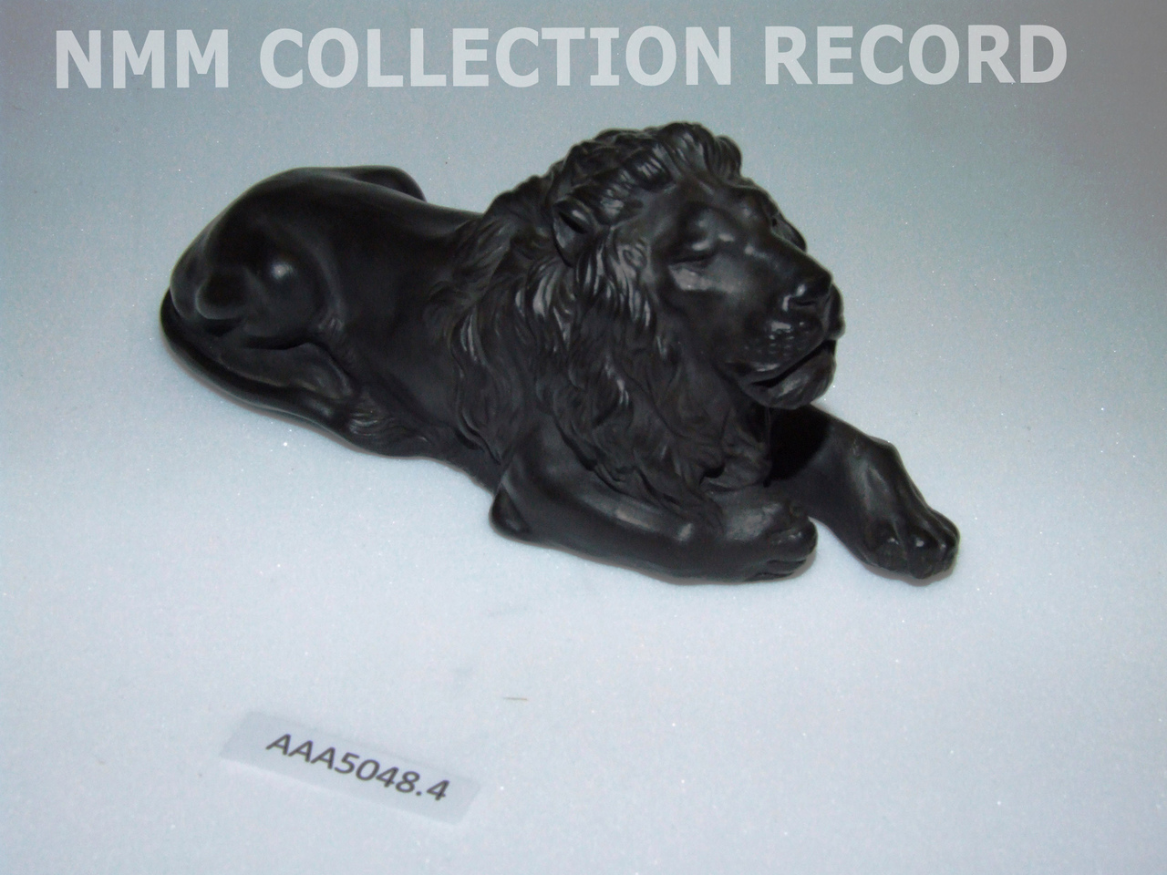 . Black basalt model based on Nelson's column. It disassembles into seven pieces - the base, column and figure with four separate lions. The four neo-classical reliefs on the base differ from those on the actual monument and symbolise music, literatu