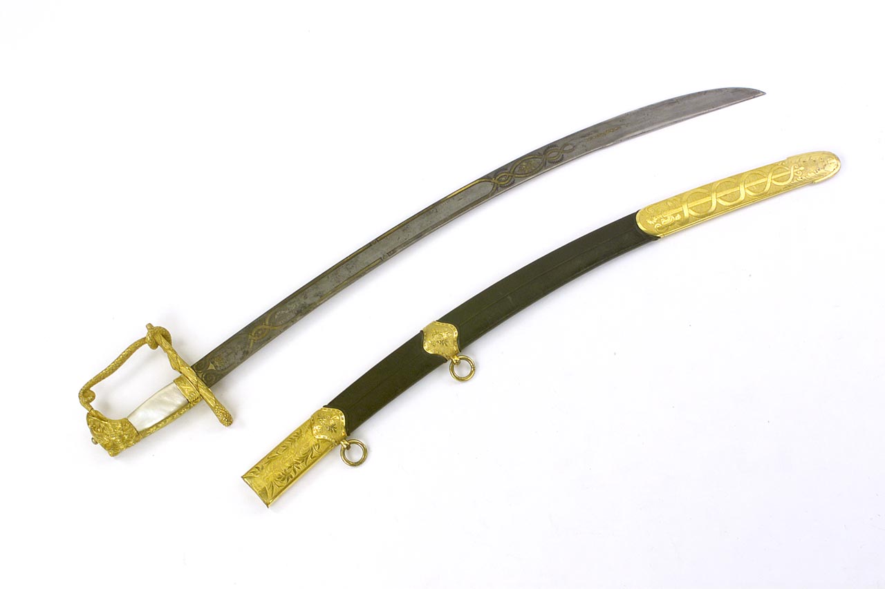 Scabbard from Lloyds Patriotic Fund £100 Trafalgar pattern presentation sword that belonged to Captain J.R. Lapenotiere (1770-1834). Scabbard from the Lloyds Patriotic Fund £100 Trafalgar pattern presentation sword, which belonged to Captain