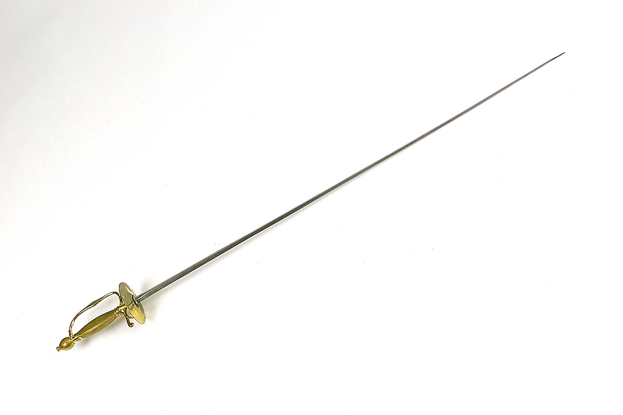 . Small-sword which belonged to Alderman Joshua Jonathan Smith (active 1810-1844), Lord Mayor of London 1810-1811. The hilt of the small-sword consists of a gilt knuckle-bow, which is decorated with a row of bright diamond-shaped steel studs inserted at t