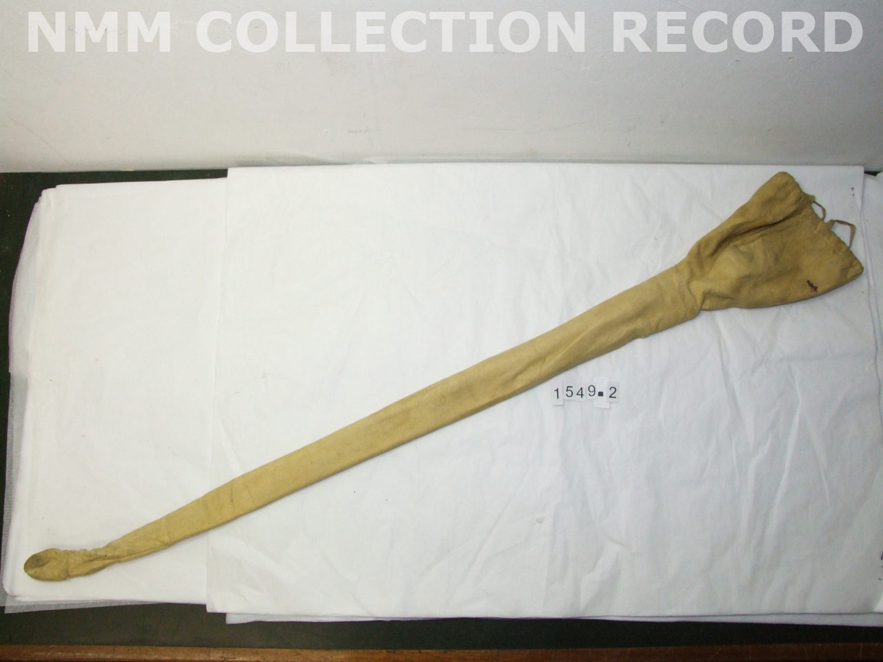 . Scabbard for straight stirrup hilted sword, said to have belonged to Vice-Admiral Sir Samuel Hood (1762-1814), although this thought to be dubious as Vice-Admiral Hood died in 1814 and this pattern sword was not introduced until 1825. The black leather