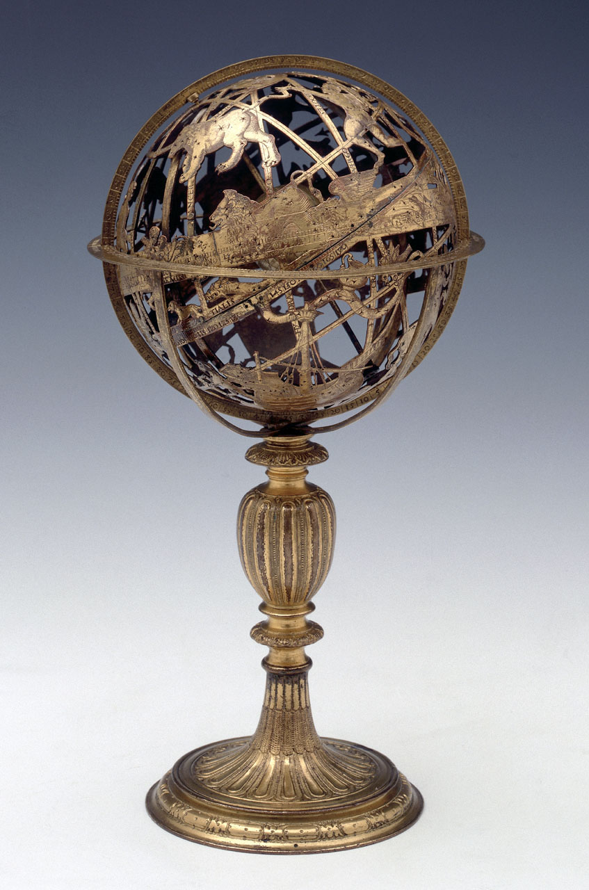 Celestial table globe. Celestial table globe. Astronomical details on the sphere include a labelled magnitude table in front of Ursa Major. The Milky Way is drawn but not labelled. There is extensive astrological information, and a total of 52 stars and s