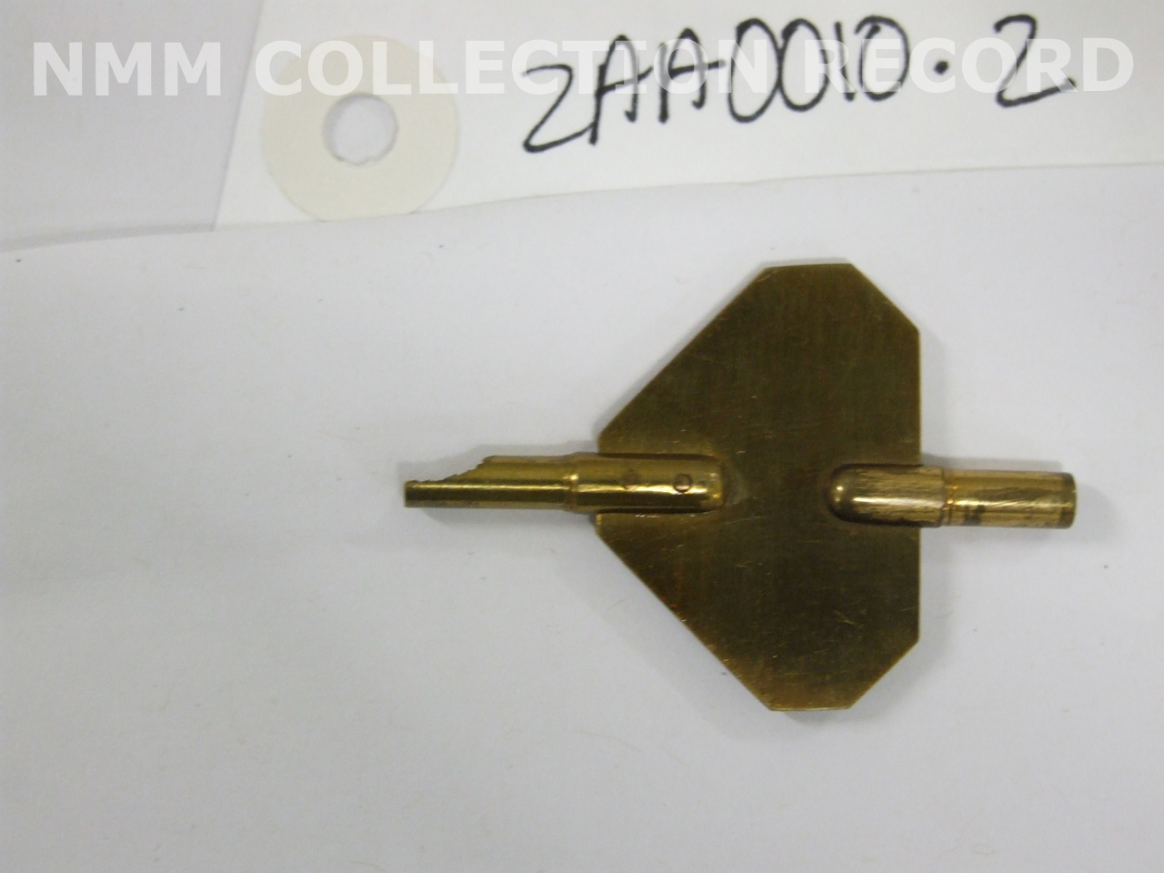 . Brass crank winding key made for H2 in 1924 as part of Gould’s restoration. The key is engraved: 'HARRISON No.2 1924'.