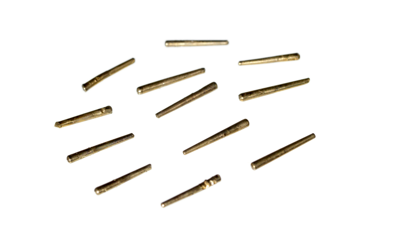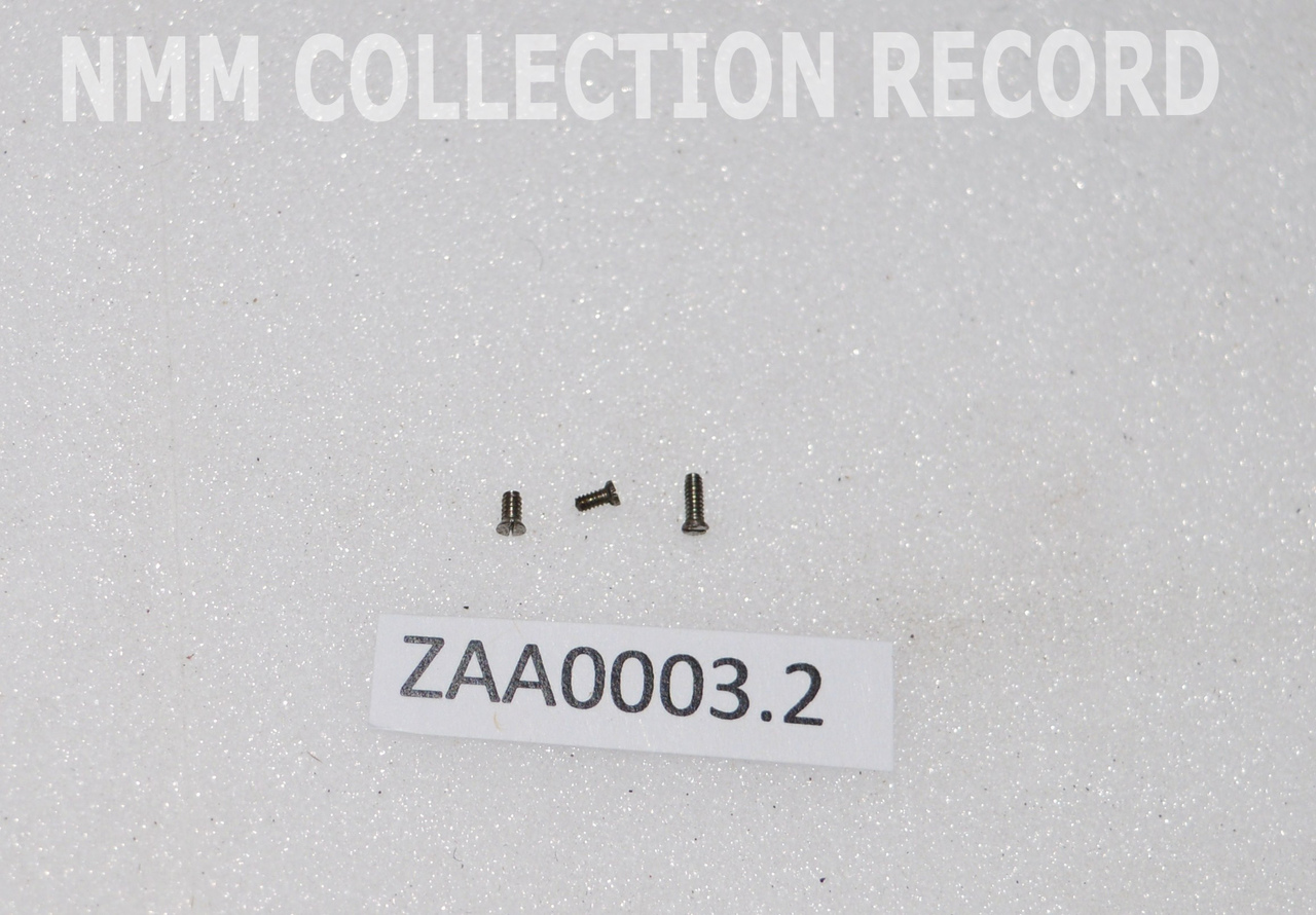 . Three steel screws and a pin associated with ZAA0003 watch in silver pair case.