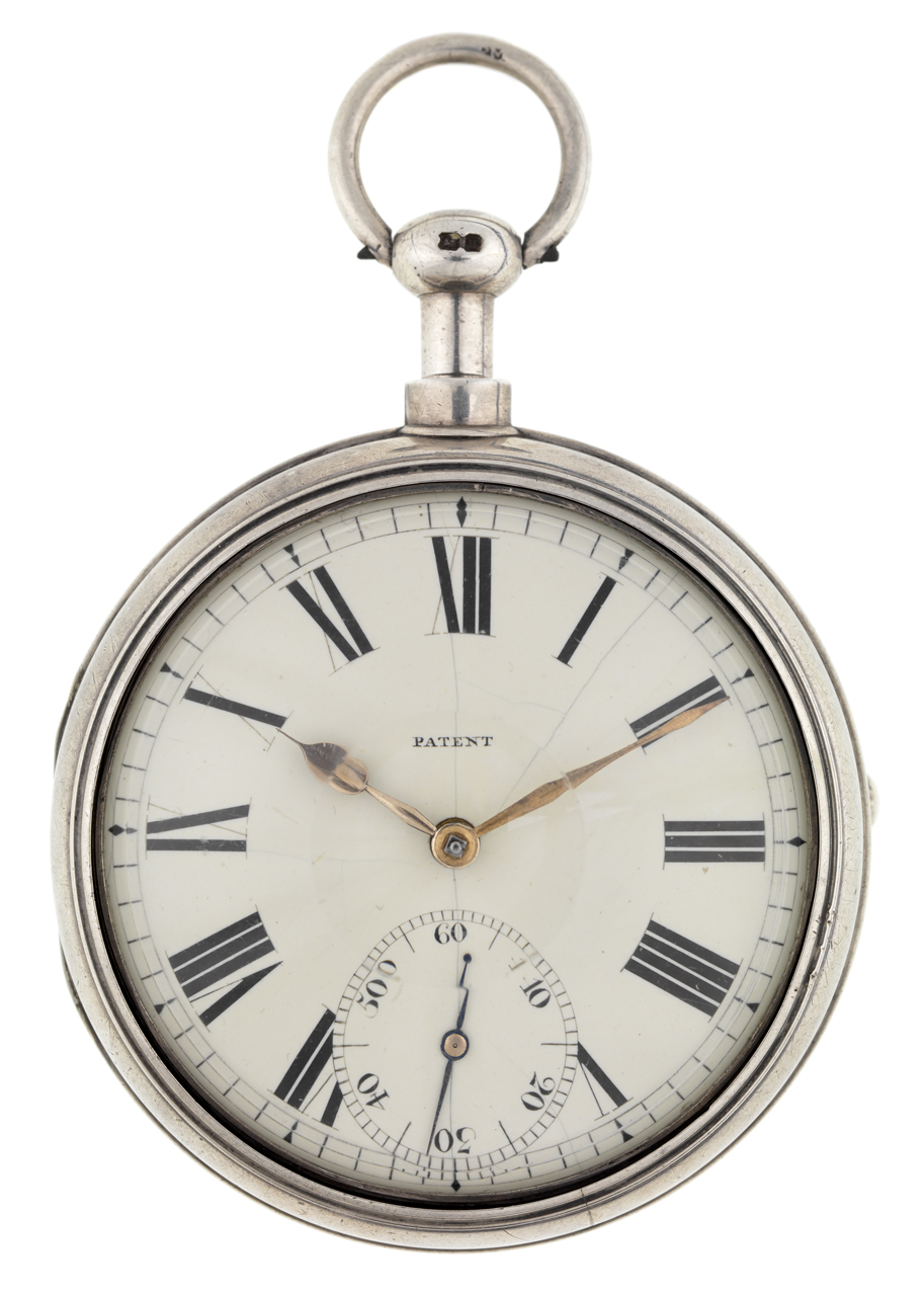 Pocket watch. Pocket watch in a hallmarked silver pair case. It has a full-plate capped fusee movement, marked 'Improved Patent', with a five tooth lever escapement as patented by Sam.Smith, Coventry (patent 3620, 9th December, 1812) and a secon