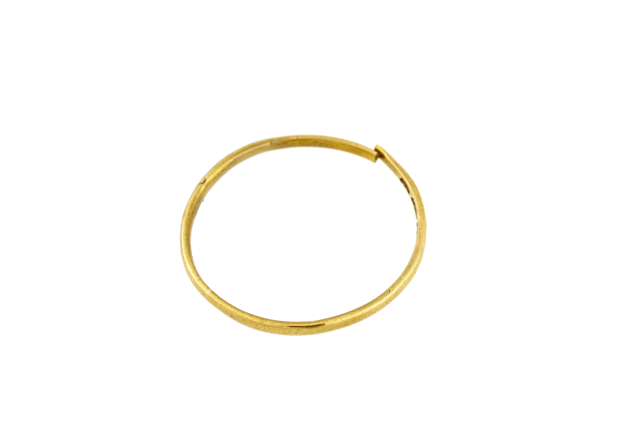 . Plain gold wedding ring which belonged to Horatia Nelson-Ward (1801-1881), Vice-Admiral Horatio Nelson's (1758-1805) daughter. The ring is made of a narrow strip of gold bent around to form a roughly circular form. The ends are not soldered. Near o