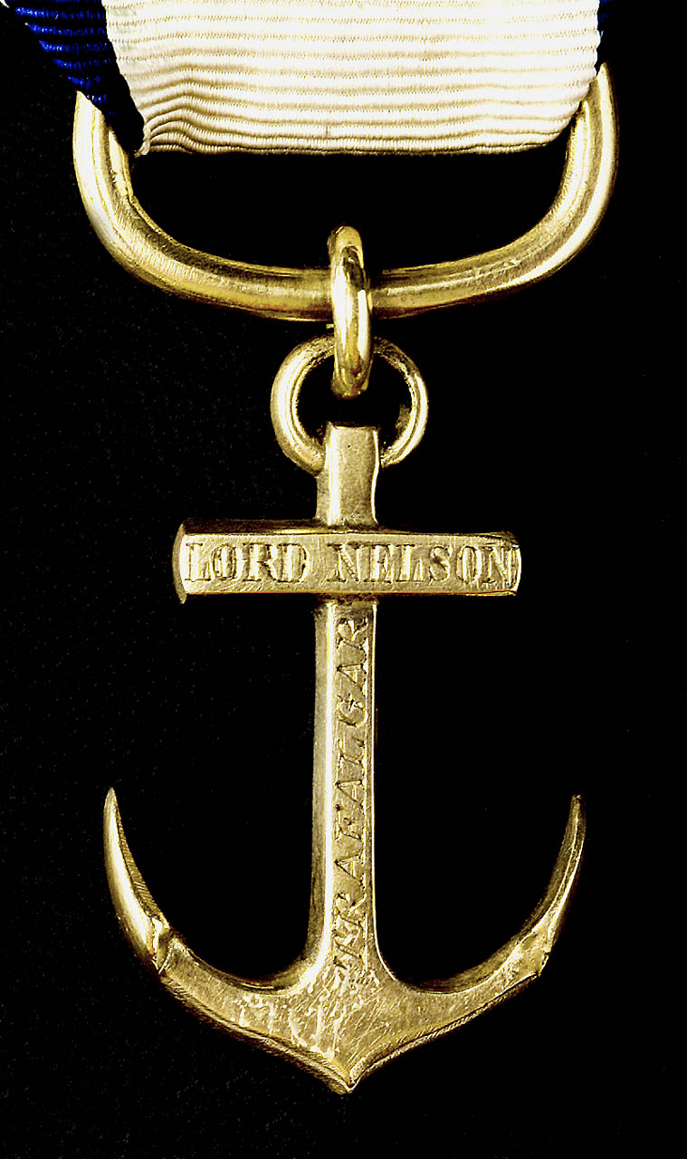 . Pendant commemorating the Battle of Trafalgar, 1805. An anchor pendant. Obverse: Inscribed 'TRAFALGAR' on shank; on stock 'LORD NELSON'. Reverse: Inscribed 'TRAFALGAR' on shank; on stock '21st Octr 1805'. Fitted w