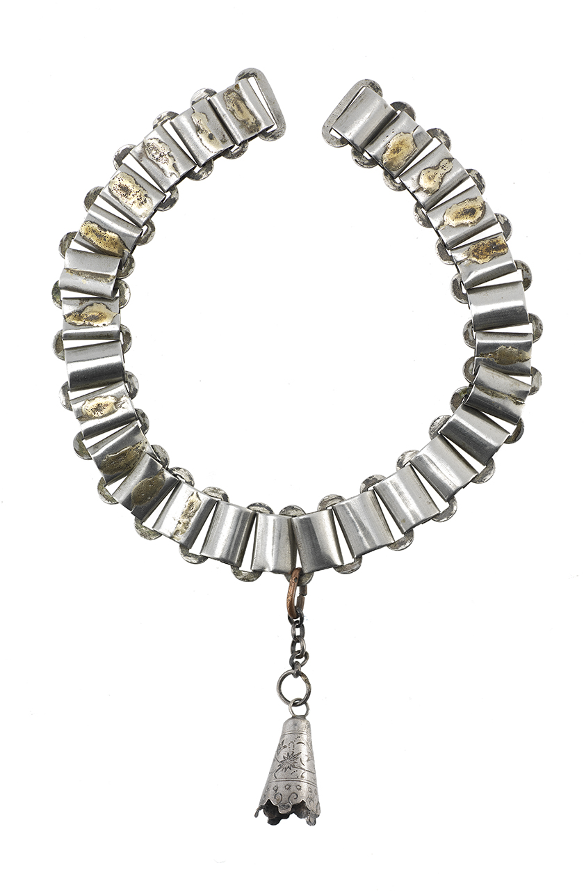 Goat chain link collar. A Goat chain link collar with a bell attached. The solder on various chain links are starting to discolour.