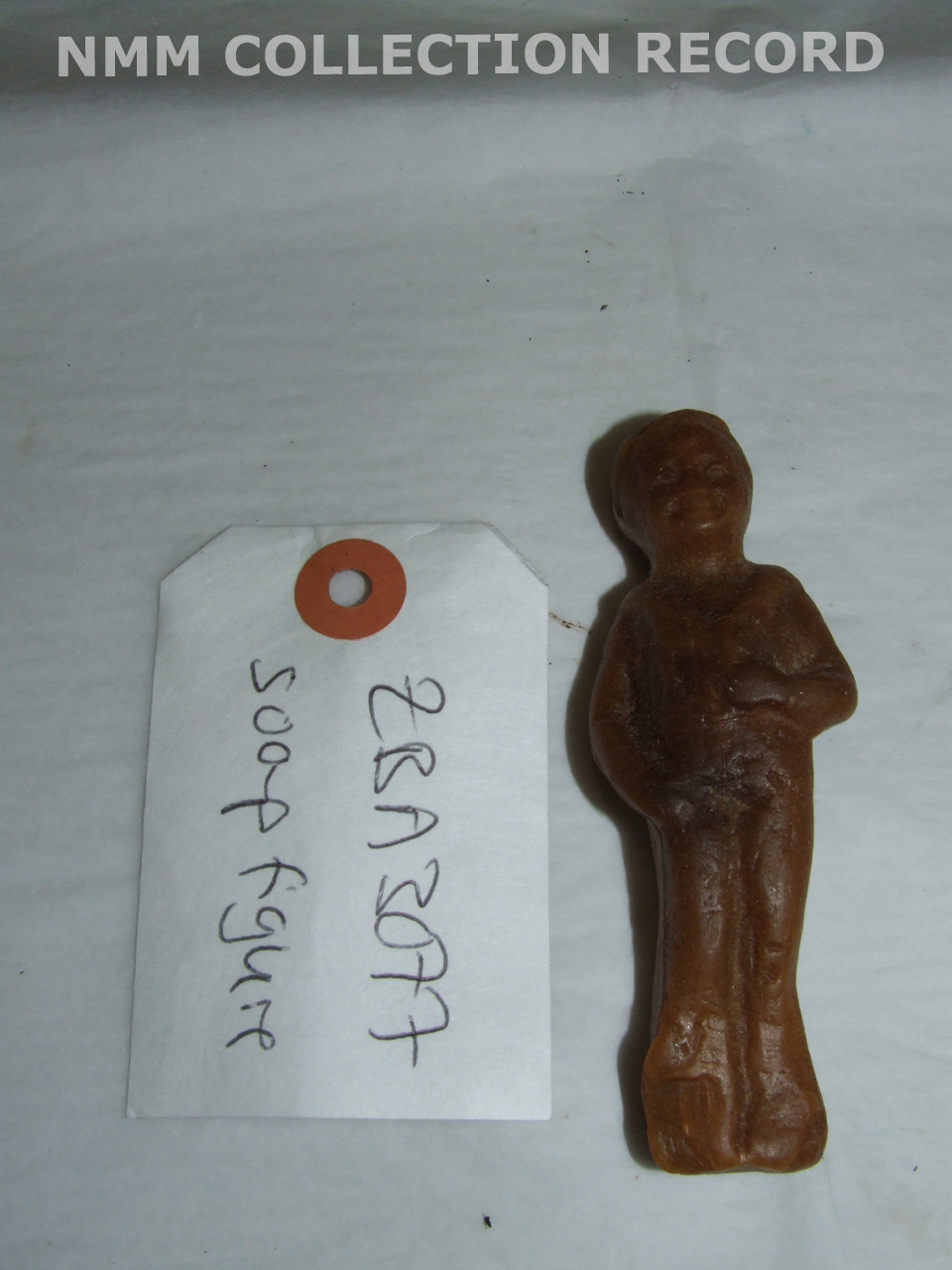 . Small piece of beige soap moulded in the form of a rating, inscribed on the reverse 'Jolly Jack', '"Cooks" LONDON'. The maker is in Kelly's Directory of 1911 - 'Cook, Edward & Co Ltd, Soap works, Bow E. City