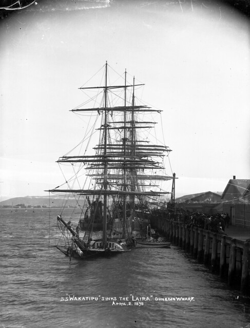 The S.S. Wakatipu sinks the Laira at Dunedin wharf, 2 April 1898