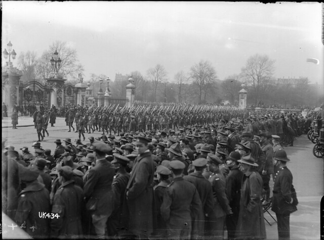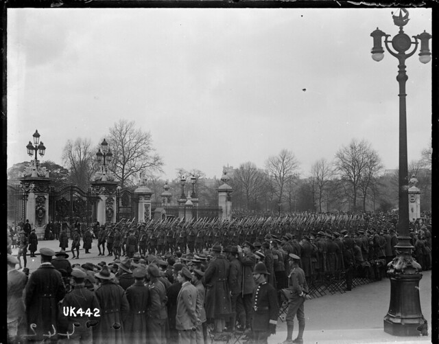 New Zealand troops marching past the gates of Buckingham Palace, London, May 1919
