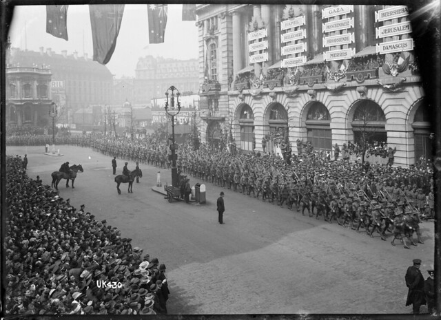 New Zealand soldiers and civilians in London at the end of World War I, 1918