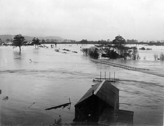 Coal creek, near Greymouth, under flood waters, ca 25 Jun 1905