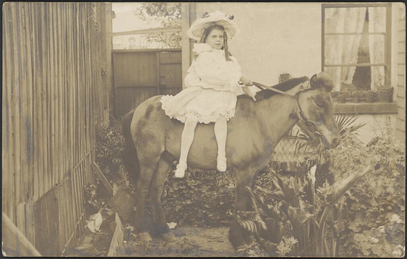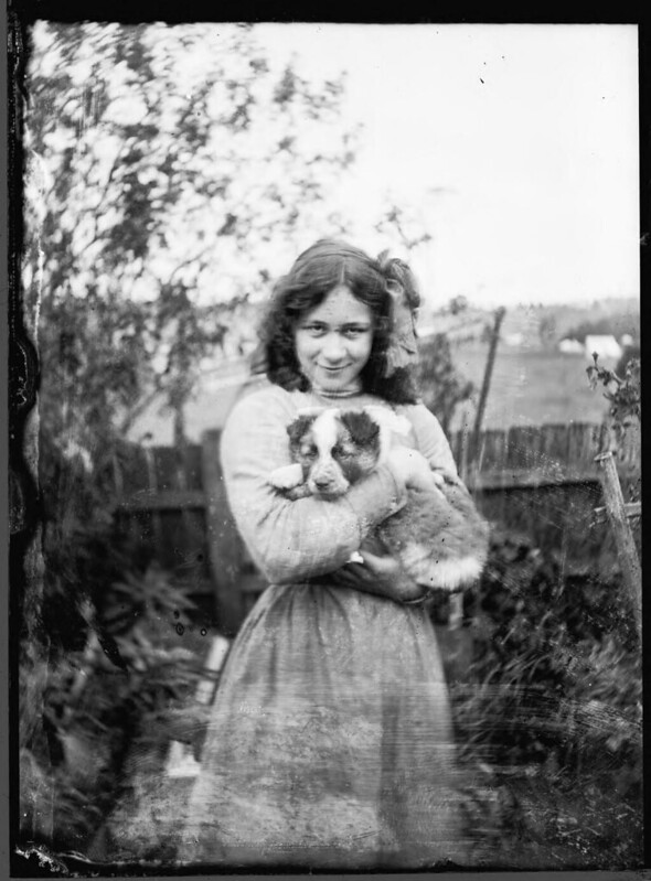 Elsie Ferguson [?] holding a cat in a garden, Gundagai, New South Wales, 1 / Charles Gabriel