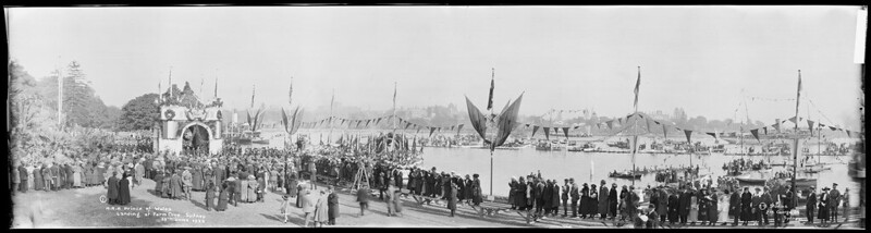 Panorama of V.A.D. Inspection by Prince of Wales, landing at Farm Cove, 16 June 1920, 1 / EB Studios