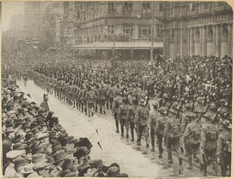 Australian Imperial Force's 2nd Infantry Brigade marching through Bourke Street, Melbourne, Friday, 25th September 1914.