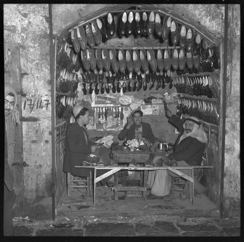 Street scenes in Jerusalem [cobblers and a shoe shop] [Frank Hurley]