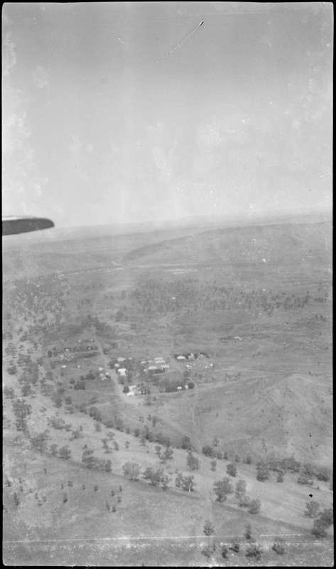 Aborigines and stockmen on horseback in front of de Havilland DH61 Giant Moth biplane airliner G-AUHW 'Canberra' wave goodbye to Les Holden and crew, Flora Valley, Western Australia, 23 April 1929.