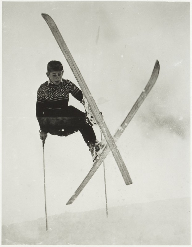 Billy Day, 8 or 9 years old, doing a flying jump turn