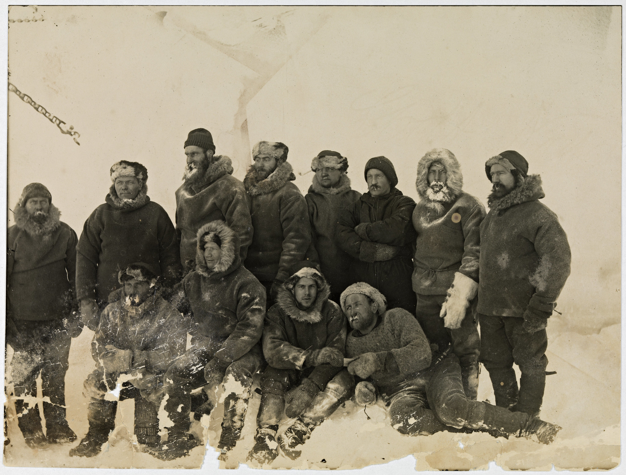 Fridtjof Nansen i livbåten og mannskapet om bord i Fram, 1893