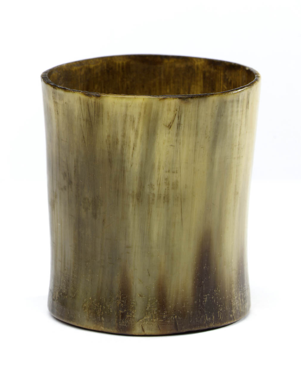 Plain horn beaker. Plain horn beaker, which was previously inscribed in ink by Capt William Bligh, now lost: 'Allowance of water 3 times a day'. This beaker was used by Lieutenant William Bligh to measure rations during the voyage from Tofoa to