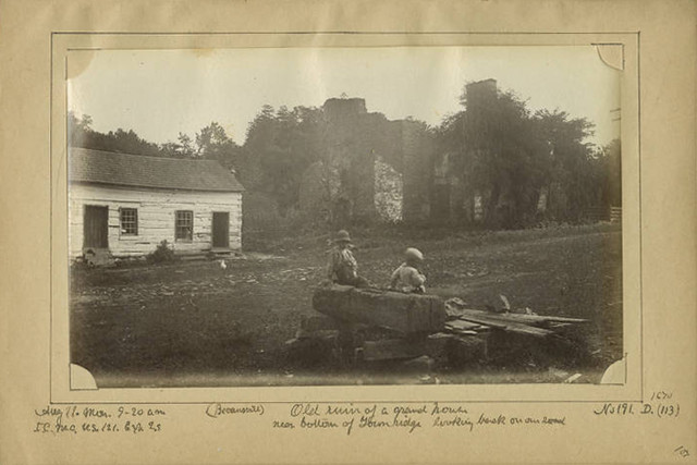 (Bevansville) Old ruin of a grand house near bottom of Town ridge looking back on our road
