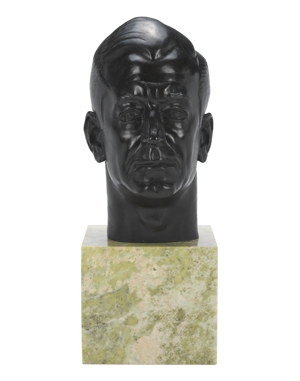 Captain George Elvey Creasy (1895-1972). Bust of head and neck of Captain George Elvey Creasy, on a cube of green marble as base. The sitter's ruggedly handsome appearance and neatly combed hair are complemented by the tattoo represented in incised l