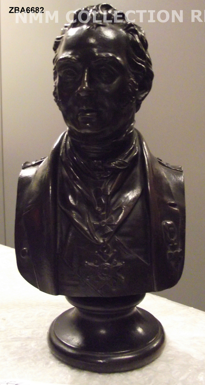 Vice-Admiral Horatio Nelson (1758-1805). (Updated February 2015) Head-and-part-shoulders over-life-size bronze bust of Vice-Admiral Horatio Nelson, facing forward, in rear-admiral's full-dress uniform (one shoulder star).