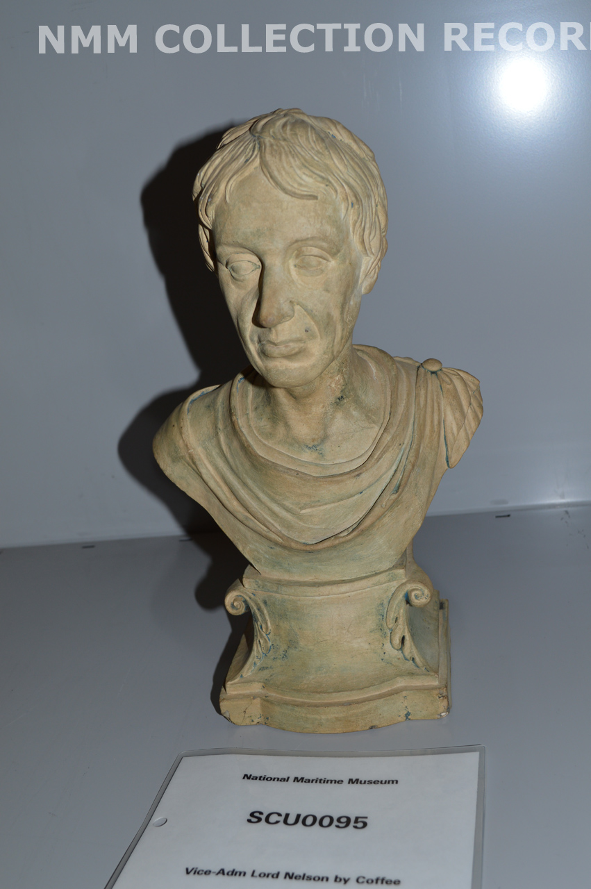 Vice-Adm Horatio Nelson (1758-1805). Head-and-shoulders classical-pattern bust, on a shaped square plinth with scrolled side decoration.