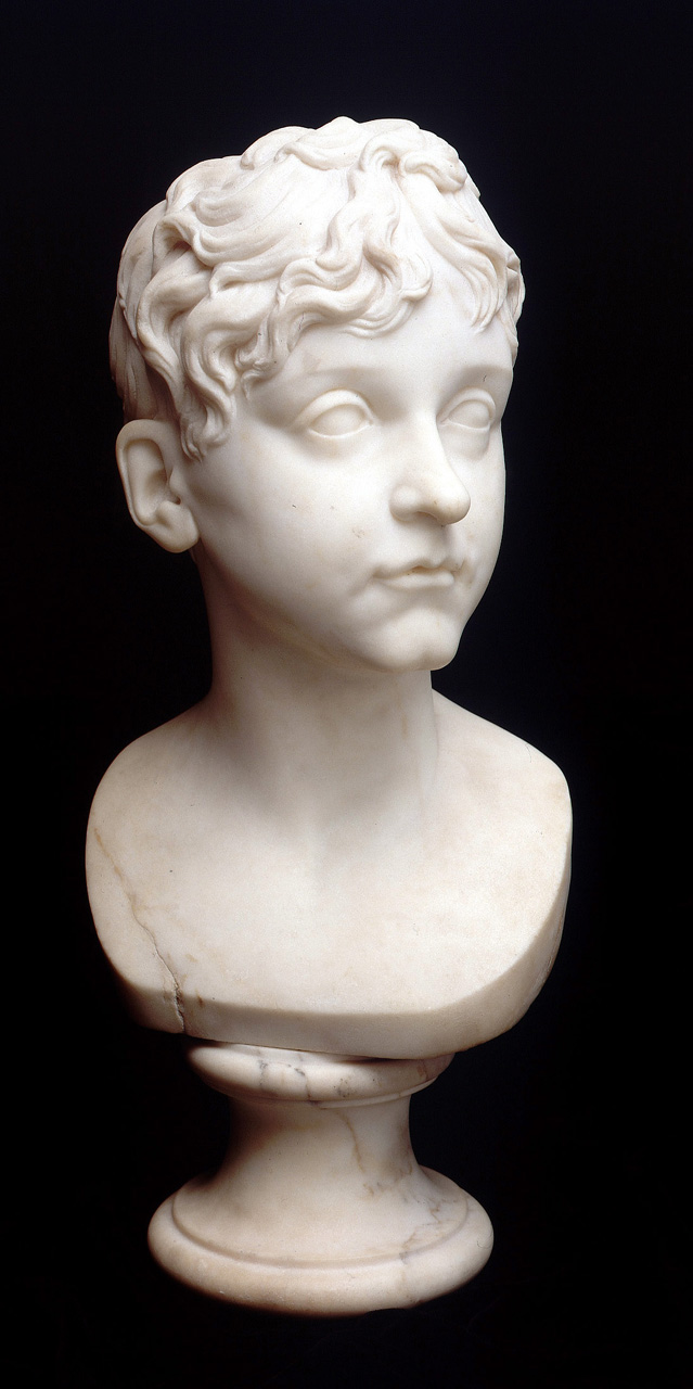 Horatia Nelson (1801-1881). (Updated, January 2011) Head-and-part-shoulders marble bust on a round socle, the sitter's head turned half to her left, with short curly hair in natural disorder and bare shoulders. The right shoulder has a grey vein in t
