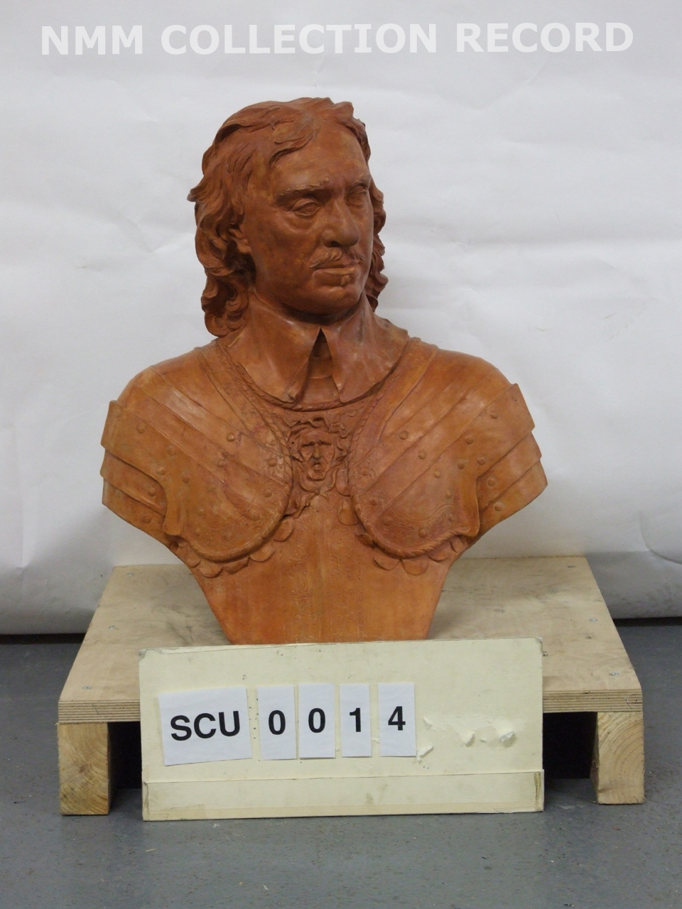 Oliver Cromwell (1599-1658). Head-and-shoulders terracotta bust of Oliver Cromwell, bare-headed, in armour decorated with a Medusa head on the cuirass. This is one of eight busts of British worthies made by Rysbrack for Sir Edward Littleton's new hou