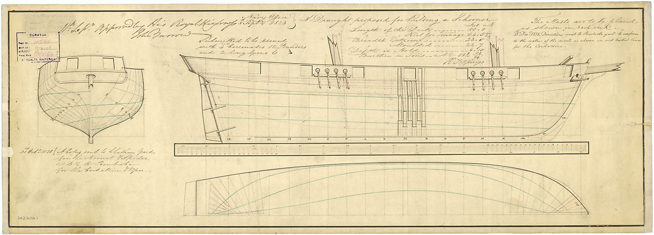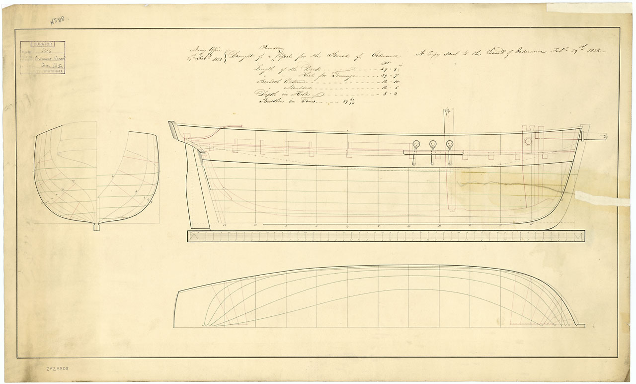 Initialled by Joseph Tucker [Surveyor of the Navy, 1813-1831], and Robert Seppings [Surveyor of the Navy, 1813-1832].