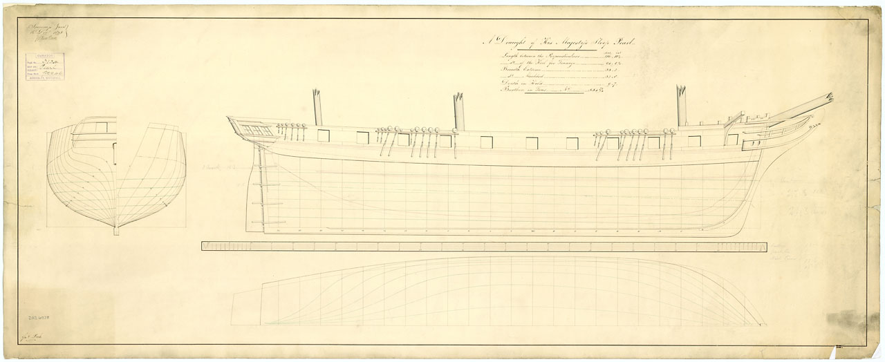 NMM, Progress Book, volume 7, folio 559 states that 'Pearl' arrived at Sheerness Dockyard on 10 December 1834 and was docked on 8 January 1835. She was undocked on 15 April 1835 and sailed on 1 July having been refitted.
