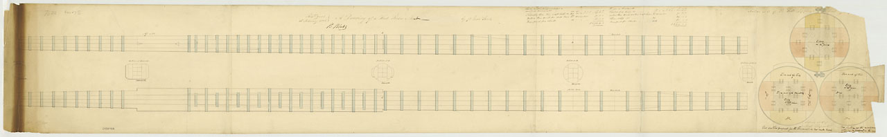 Vestal (1833). Scale: 1:48. Plan showing an elevation with description for the fitting of a chane around the rudder of Vestal (1836), a 28-gun Fifth Rate Frigate.