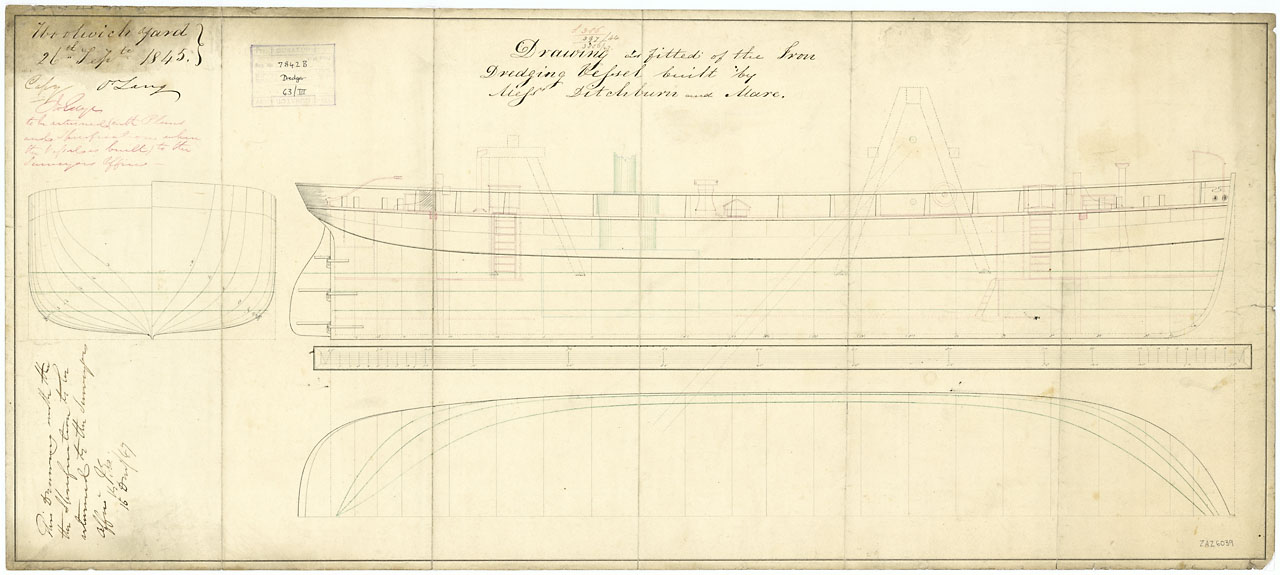 Simoom (1849). No scale. [Copy of a] Plan showing the proposed arrangement by R. Napier of the screw shaft for Simoom (1849), a Second Class Frigate, completed as a screw Troopship.