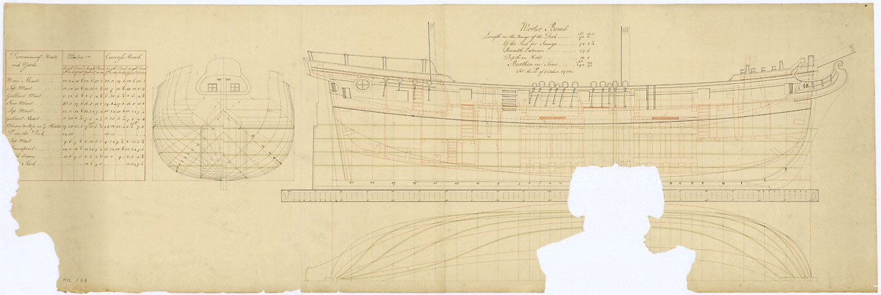 'Resolution' (1758). Scale: 1:48. A plan showing the upper deck as proposed for 'Resolution' (1758), a 74-gun, Third Rate, two-decker.