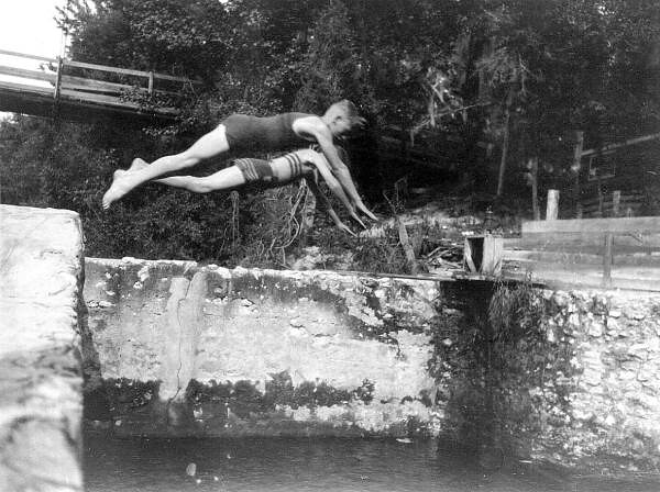 Diving in the water at the Suwannee Club camp: Suwannee Springs?, Florida