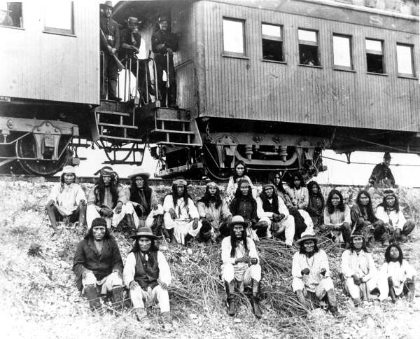 Geronimo and fellow Apache Indian prisoners on their way to Florida by train